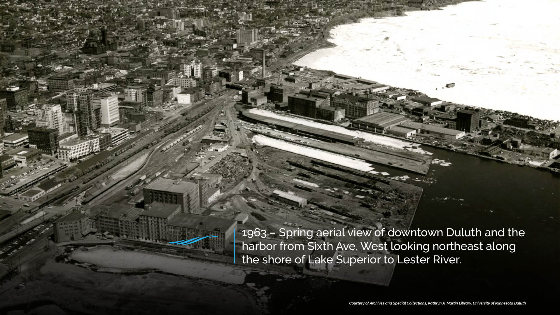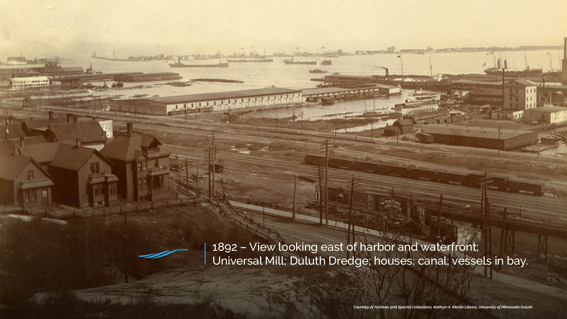 During the late 1800’s the Duluth waterfront comprised floating bogs that extended approximately 300 feet north of the Pier B site. Transformation of the harbor shoreline commenced as a result of the rapid expansion of the mining and timber industries on the Iron Range, 100 miles to the north. Around 1883 construction of a train trestle occurred connecting Rice’s Point on the west to Canal Park on the east. The trestle formed what is now the approximate location of the developed waterfront. Construction of Pier B, as it was known, occurred in 1890 by Kelley Island Lime and Transport Company to facilitate the storage of limestone shipped by steamer from their mine on Kelley’s Island on Lake Erie. Pier B is comprised of 7.4 acres. By 1892, no less than 10 piers had been constructed along the harbor front to facilitate the rapidly growing mining and timber industries. These piers are now the location of the Duluth Entertainment and Convention Center, Great Lakes Aquarium and Bayfront Festival Park.