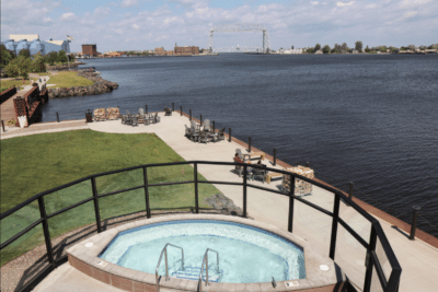 Playfront Park has to rank at the top of our must-play playground lists of the area. It is located right next door to our resort AND is Duluth’s largest playground. The design is created to enhance children’s balance, coordination, and strength. So they are having fun while developing and growing! Win-win!